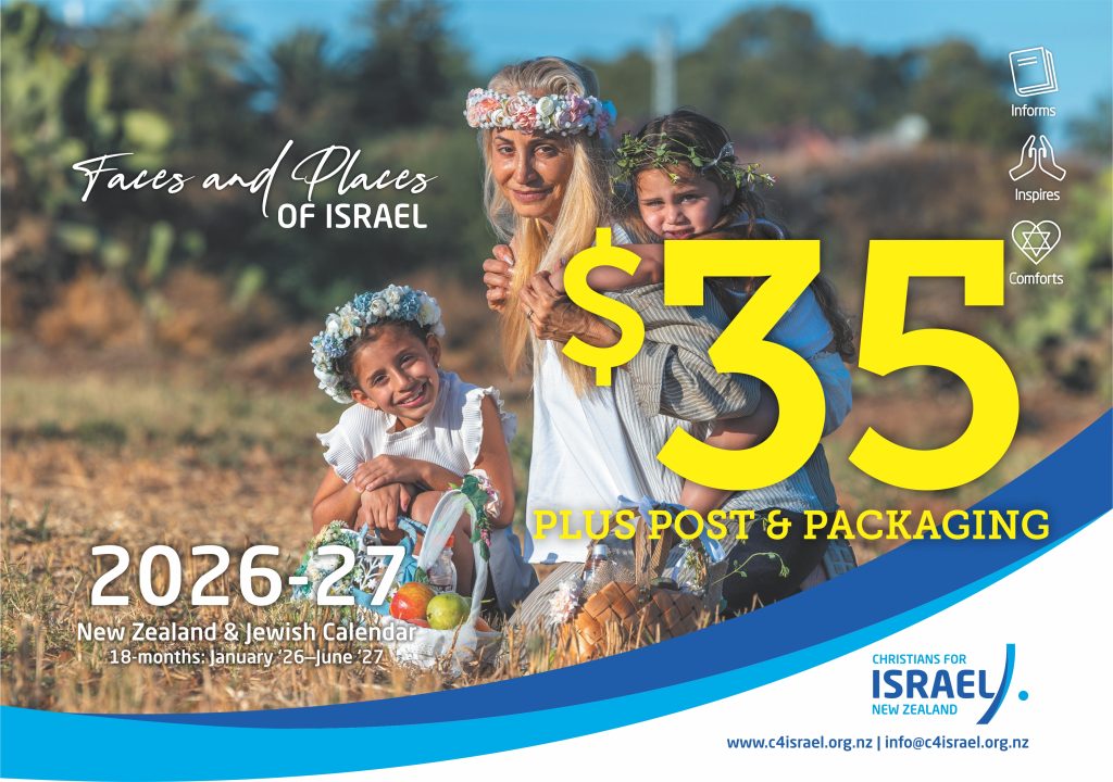 Christians for Israel New Zealand is pleased to present our new 18-month 2024-2025 CALENDAR, a unique calendar designed especially for New Zealanders that showcases Biblical Sites in Israel.