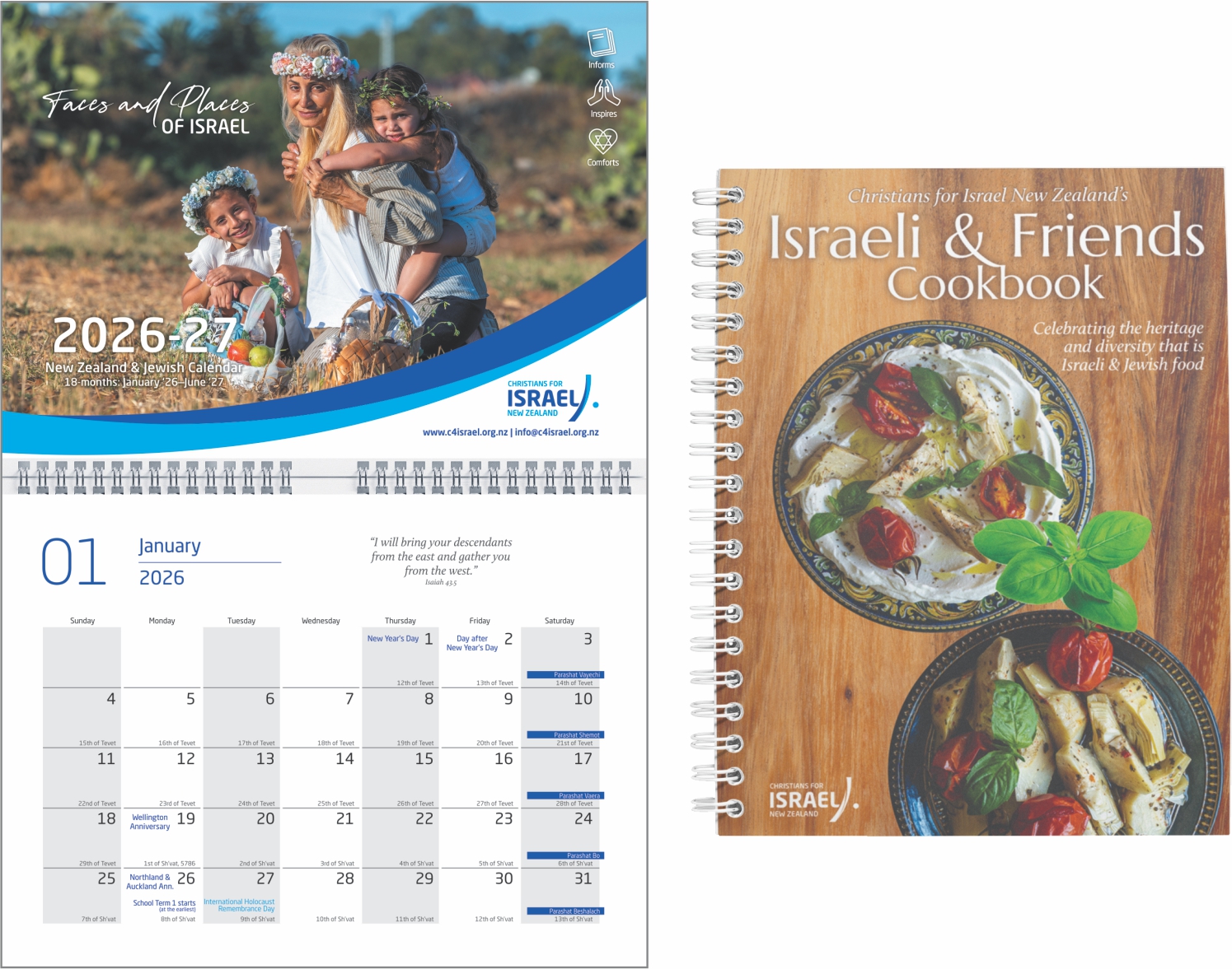 A unique calendar created just for New Zealanders, showcasing Faces and Places of Israel—A journey through the people, culture and landscapes of the Promised Land.